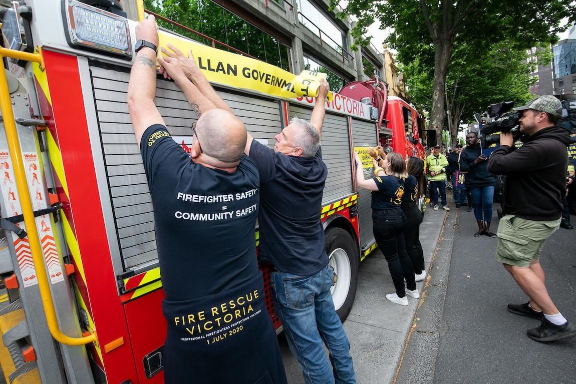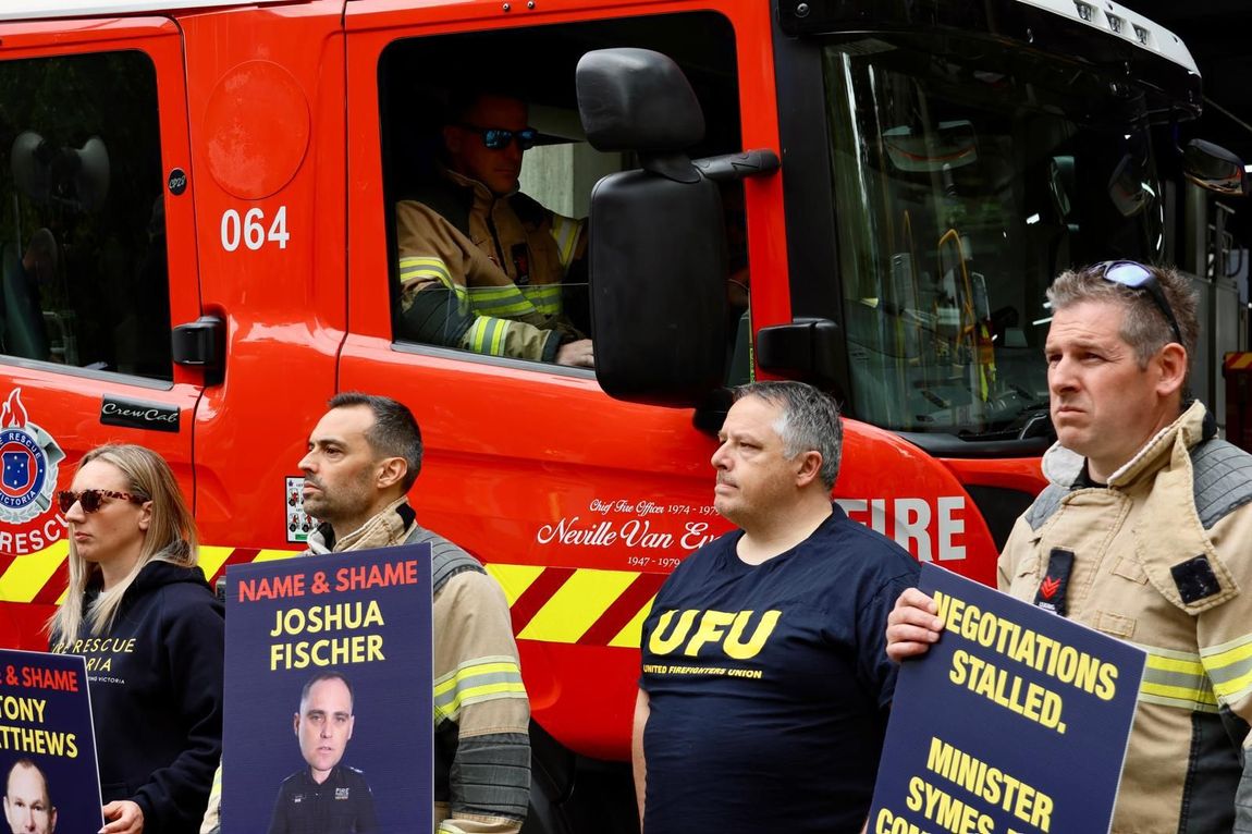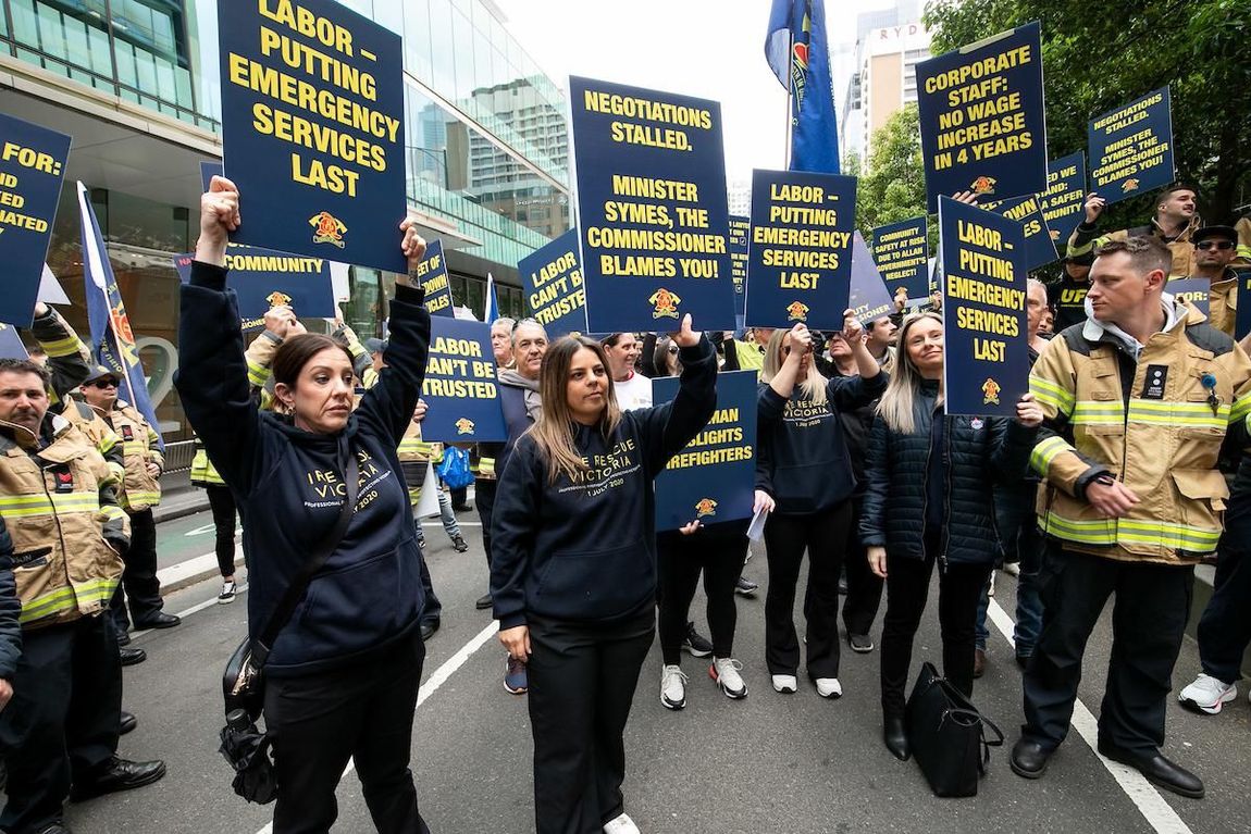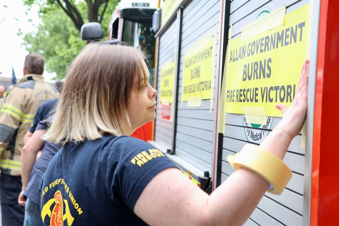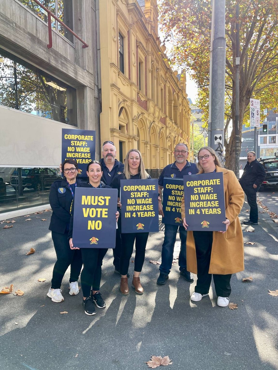 CORPORATE, TECHNICAL, AND ADMINISTRATIVE WORKERS FROM FIRE RESCUE VICTORIA TAKE PART IN MASS MEETING/WORK STOPPAGE TO PROTEST THEIR EMPLOYER THREATENING A NON-UNION EBA