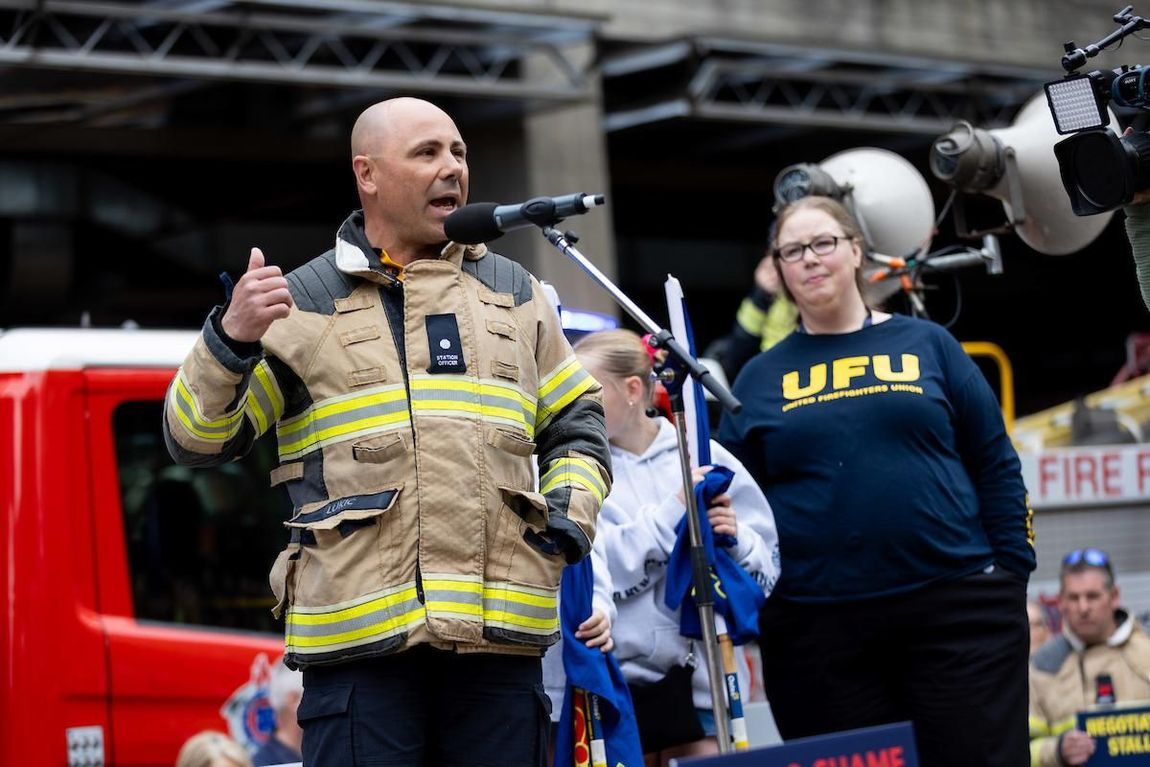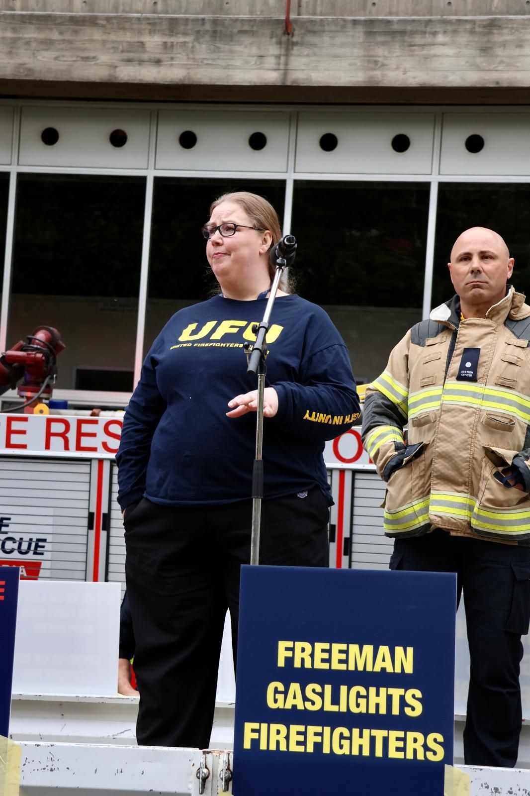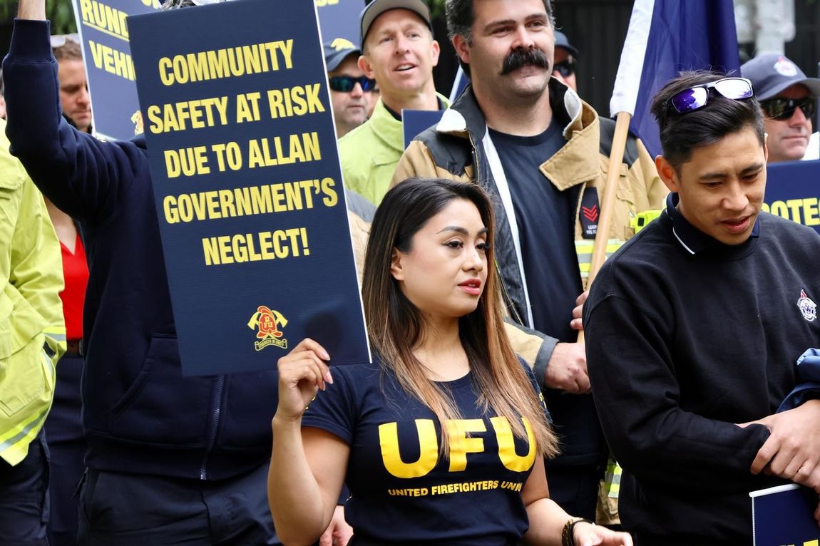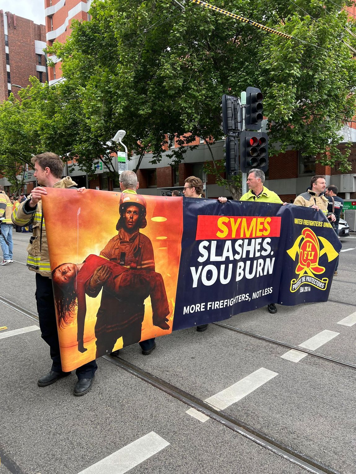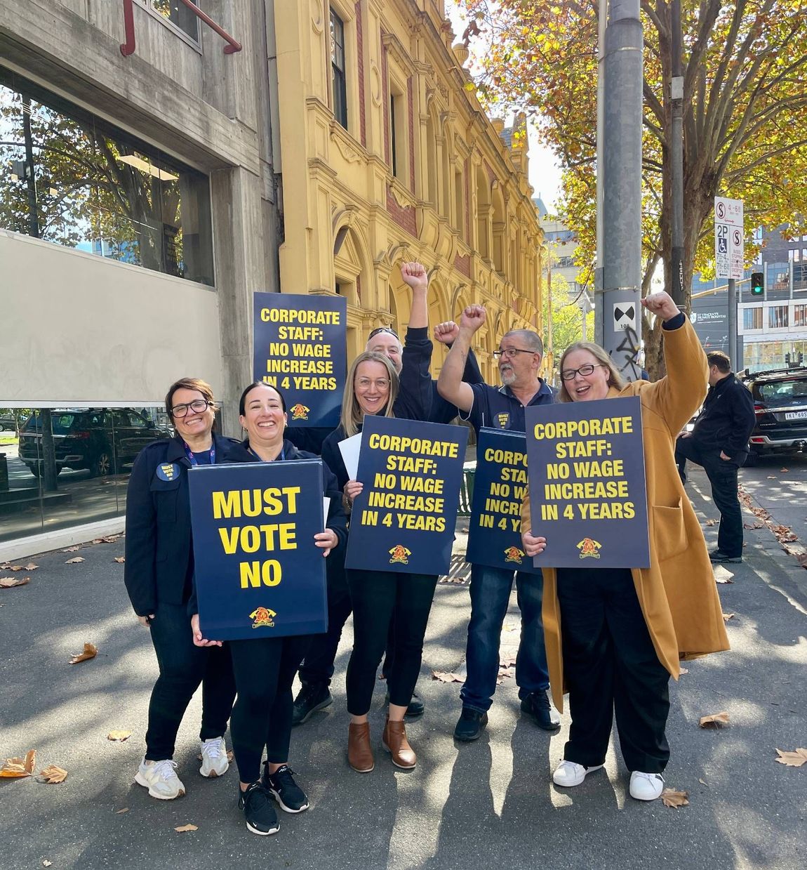 CORPORATE, TECHNICAL, AND ADMINISTRATIVE WORKERS FROM FIRE RESCUE VICTORIA TAKE PART IN MASS MEETING/WORK STOPPAGE TO PROTEST THEIR EMPLOYER THREATENING A NON-UNION EBA